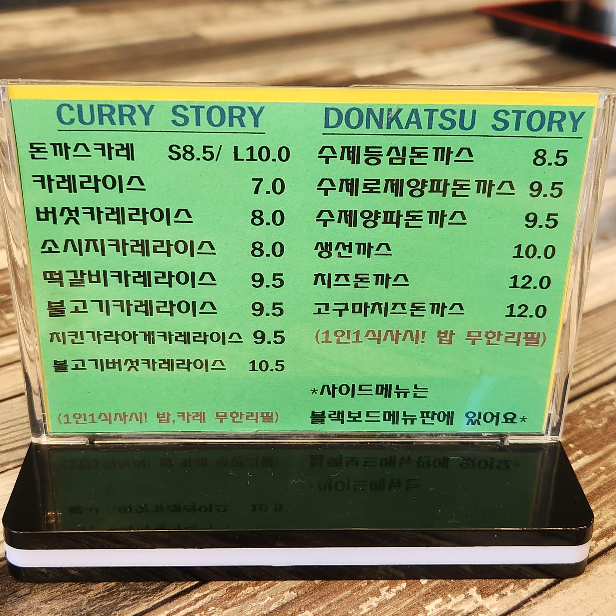 크게는 카레 메뉴와 돈까스 메뉴로 되어있다.